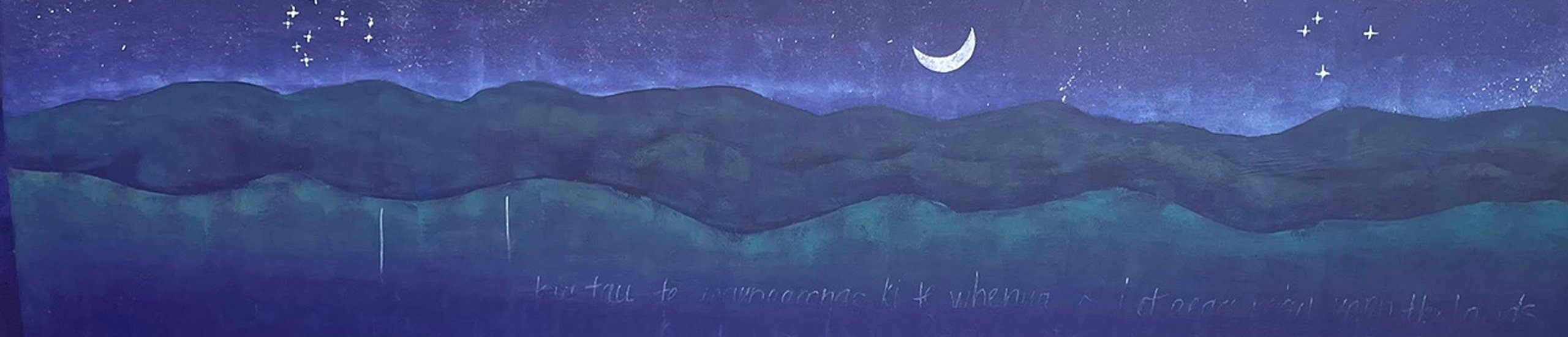Saint Joseph’s School (which has now been closed) who used to join us for kapa haka. The stars represent all of us and our cultures scattered across Te Ika Mangaroa the Milky Way. Wherever we are in the world we can always see stars. The huia feathers from our now extinct manu (bird) represent: nāu te rourou, nāku te rourou, ka ora e te iwi. With your food basket and my food basket, the people will thrive. Everybody has something to offer and by working together we can all flourish.